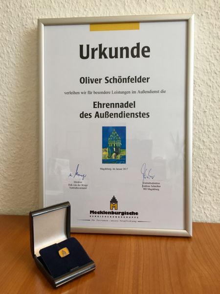 Ich bedanke mich bei meinem Vertragspartner für diese tolle Anerkennung.